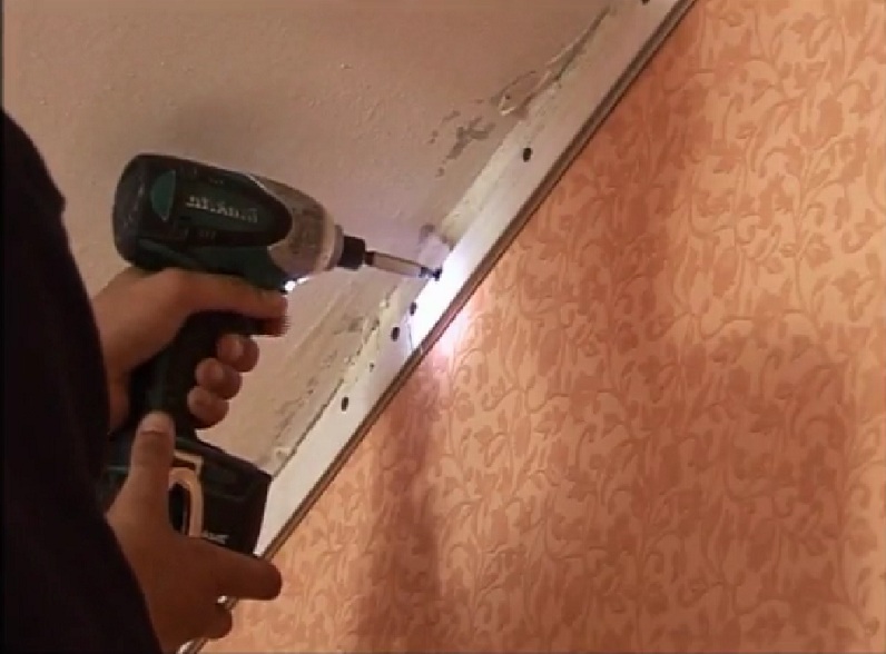 Aber was ist, wenn die Reparatur längst abgeschlossen ist und Sie die Tapete wieder einfügen müssen, ohne die Decke zu beschädigen? Die Demontage sollte sehr sorgfältig durchgeführt werden, besonders wenn die Tapete auf der ersten Stufe eingefügt wurde. und fiel unter das Deckenprofil. Sie müssen freigegeben werden, ohne die Leinwand zu beschädigen.