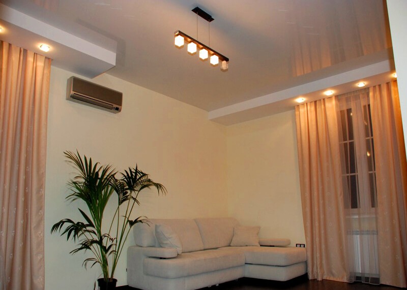 Wenn Sie eine Spanndecke wählen, sollten Sie die Umgebung berücksichtigen. Der Stil sollte dem Design des Raumes entsprechen.