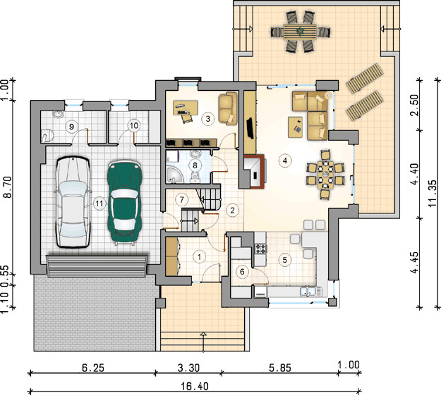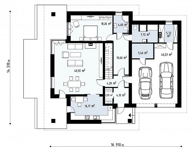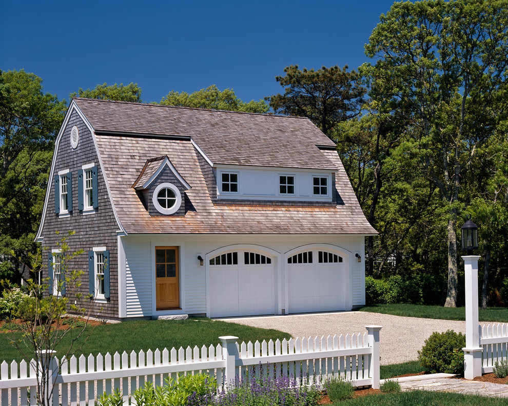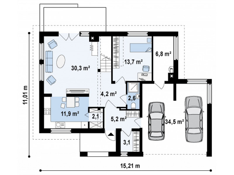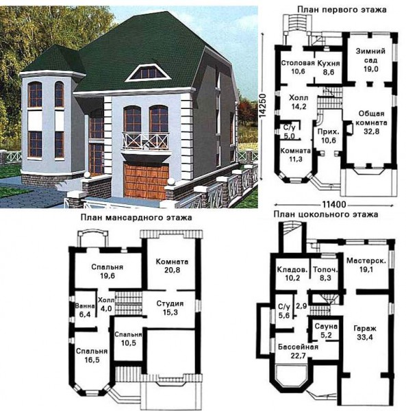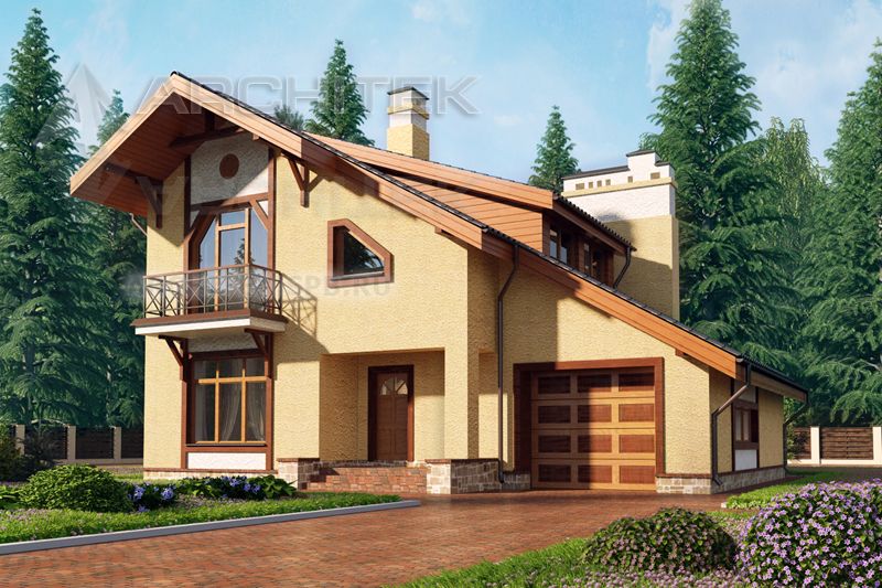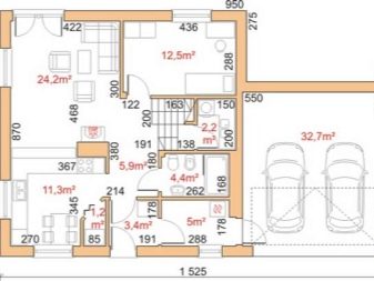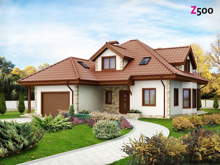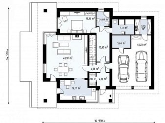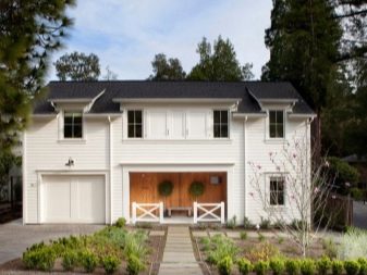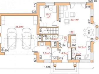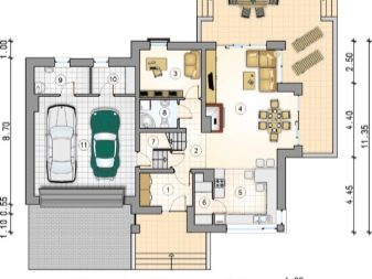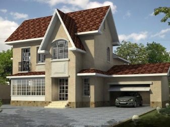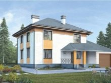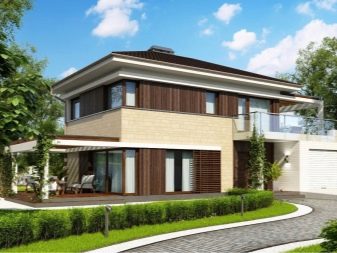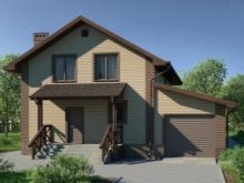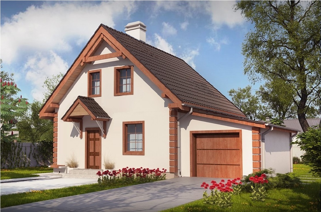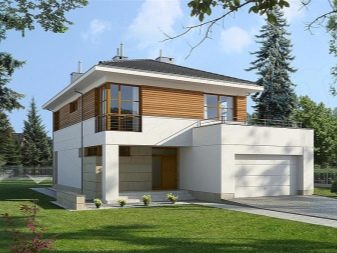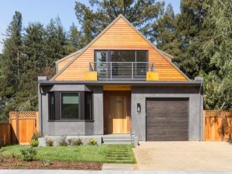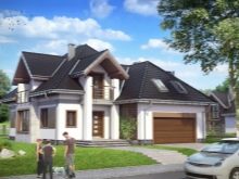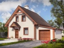 Häuser mit einer Garage und einem Dachboden können Baumaterialien sparen. Gleichzeitig wird der Garagenbereich durch das Dachgeschoss aktiv "aufgefressen" und kompensiert dadurch, dass ein eher großer Raum unbewohnt bleibt. Solche Projekte von Häusern eignen sich für den Bau von Gebäuden auf kleinem Raum.