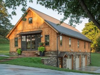 Die Entscheidung, in der Nähe, unter einem Dach, im Keller oder im Haus eine Garage zu bauen, ist ebenfalls sehr praktisch, durchdacht und ergonomisch.In der Tat wird dadurch ein technischer Raum geschaffen, der im Winter nicht durchfrieren wird (was bedeutet, dass das Auto sogar mit einem sehr großen Minus außerhalb des Fensters startet), es wird mit Elektrizität ausgestattet und in der Dunkelheit wird es möglich sein, die Fahreigenschaften zu verbessern.