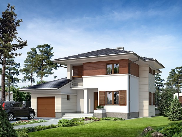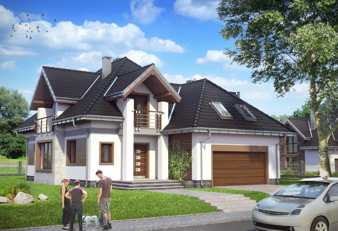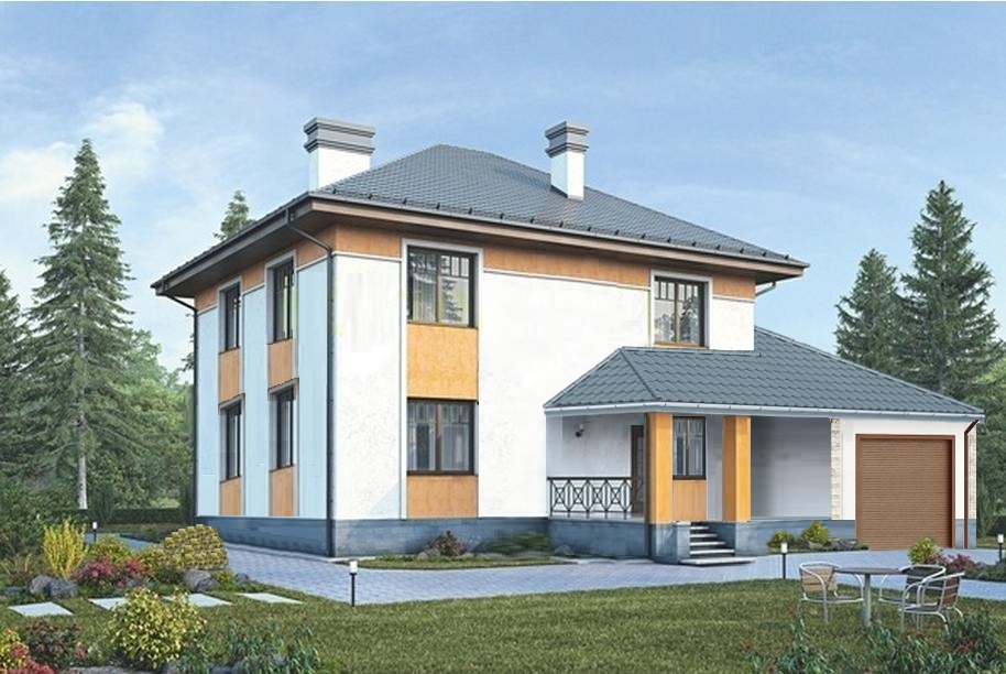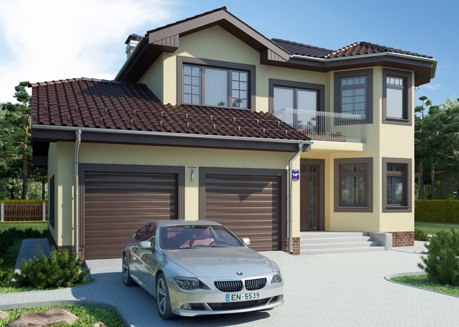 Ein schönes zweistöckiges Haus mit Garage ist ein Traum, der sehr realistisch zu realisieren ist. Und viele Projekte von Gebäuden dieses Typs und eine riesige Anzahl von bereits errichteten Gebäuden - das wird bestätigt.