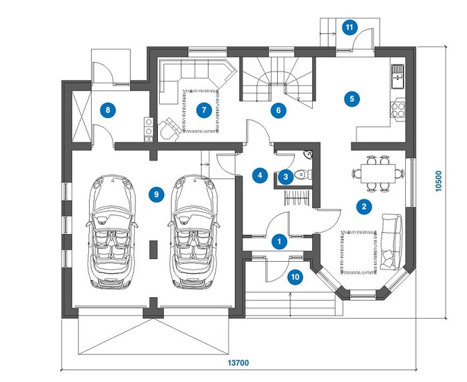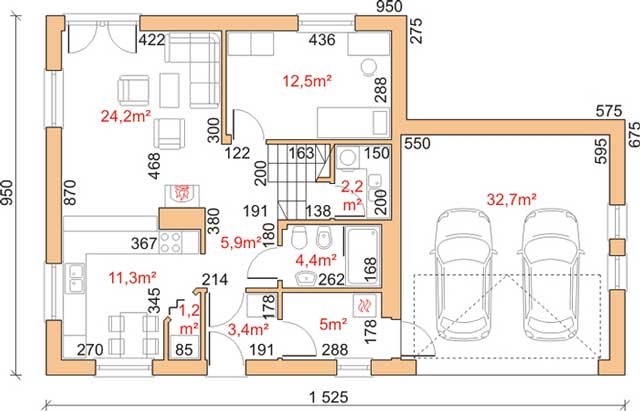 Und unabhängig davon, aus welchem Material der Bau und die Gestaltung eines zweistöckigen Gebäudes mit einer Garage durchgeführt werden, ist dies eine sehr wichtige Etappe. Alle Entscheidungen, die das Layout des Hauses verkörpern, müssen den hygienischen und hygienischen Standards entsprechen.