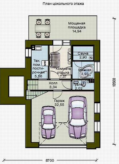 - Garage - ein Ort, wo die Maschine arbeiten wird, und daher wird es schädliche Abgase geben. Bei der Auswahl von Baustoffen ist der Durchsatz zu berücksichtigen.Beim Entwerfen können Sie keine Schlafzimmer oder andere aktiv genutzte Räume neben der Garage platzieren.