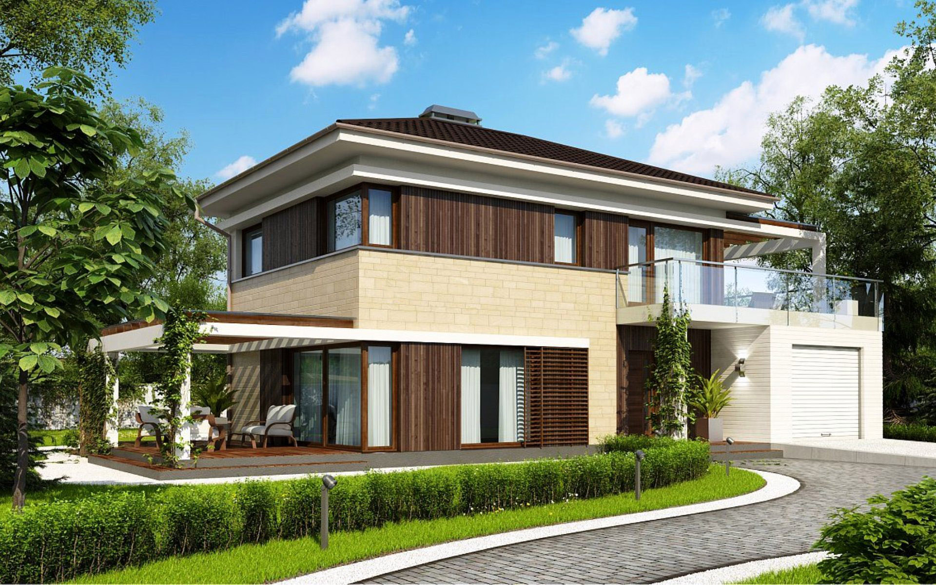 Zweistöckiges Haus mit Garage: schöne Ideen für den Bau