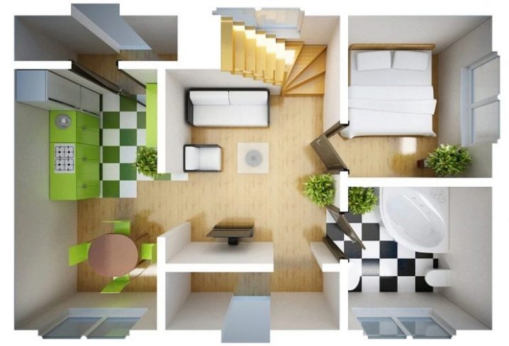 Der Bau eines 6x8 Hauses wird auf einem kleinen Grundstück viel Platz sparen. Kleine Häuser sind billiger zu bauen, besonders wenn Sie den Rahmentyp des Gebäudes wählen. In Gegenwart von Finanzen können Sie eine ähnliche Struktur aus Ziegeln, Cibit oder Holz wählen.