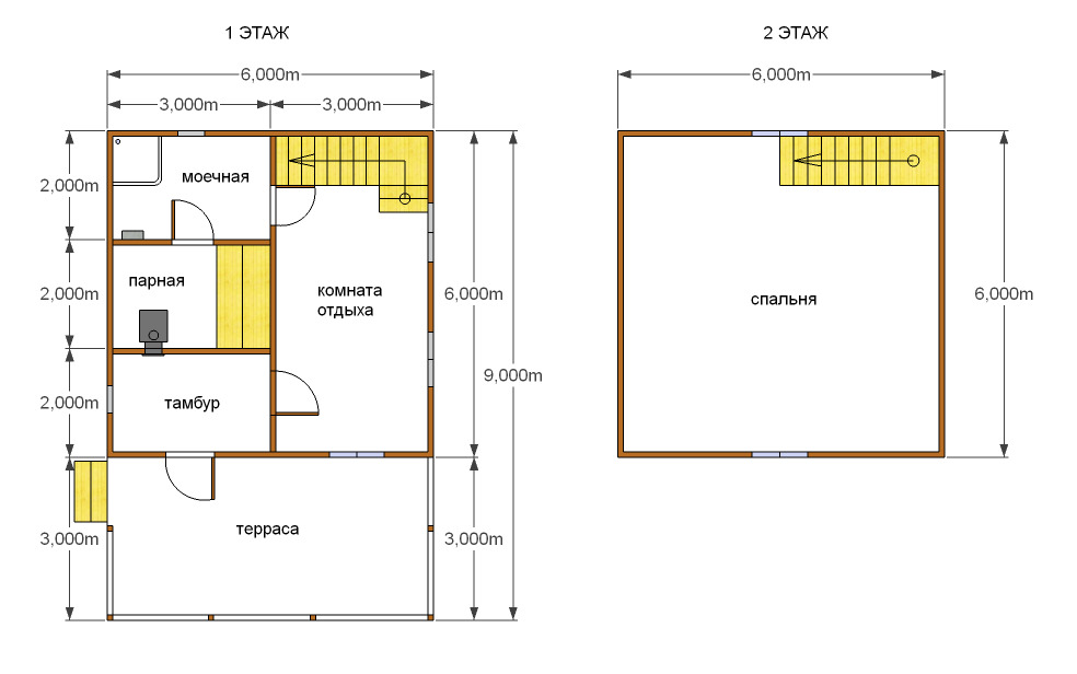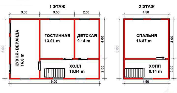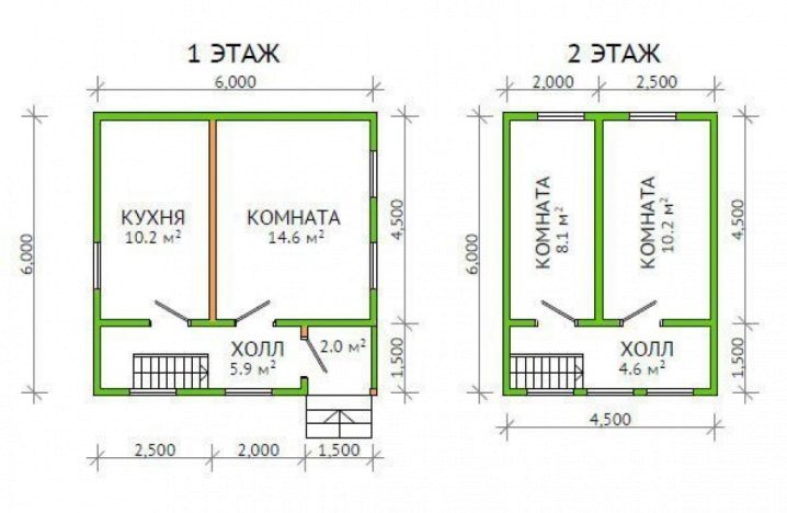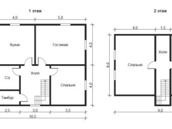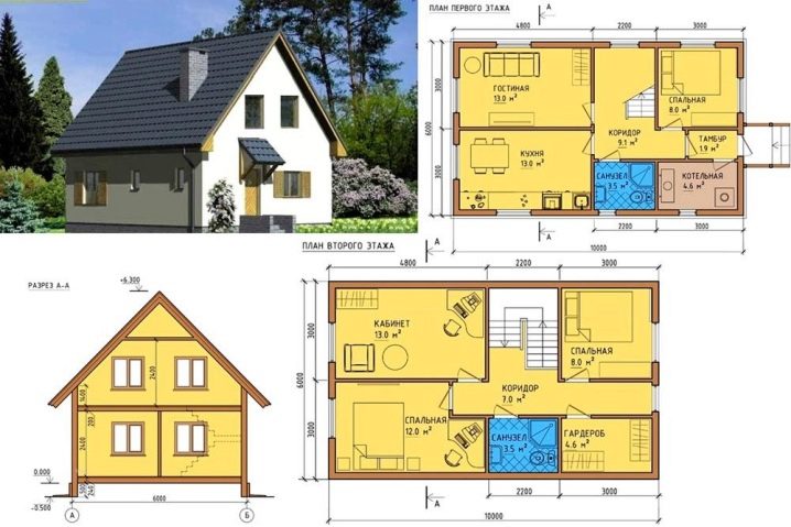 Es ist schwieriger, längliche Häuser mit den Maßen 6x9, 6x10, 4 mal 10 zu entwerfen. Aber hier können Sie drei volle Räume oder eine Garage unterbringen. Sie bauen Häuser 6 bis 9 für Familien "für Wachstum": junge Paare warten auf Ergänzung, oder reife Familien mit Kindern und Enkelkindern.