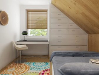- Gefühl von geschlossenem Raum. Aus psychologischer Sicht "belasten" eine schlechte Beleuchtung, eine niedrige Decke und schräge Wände eine Person und entwickeln Stressbedingungen.