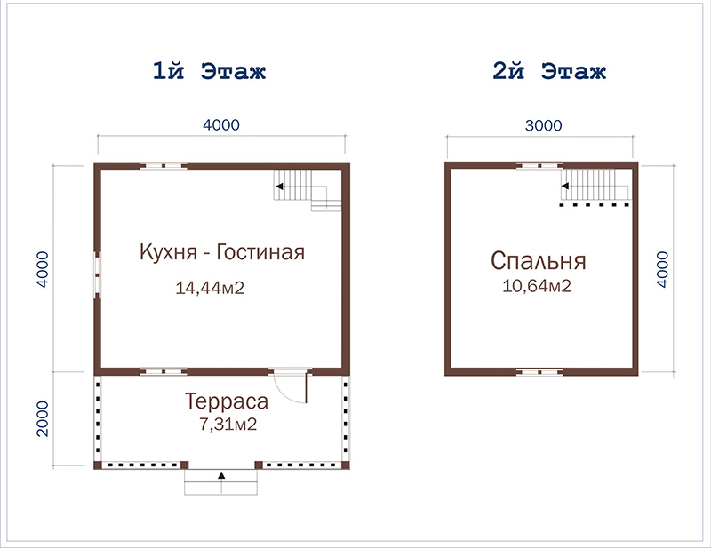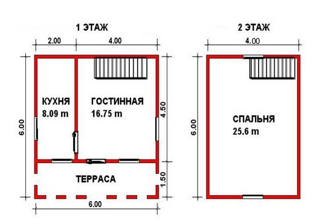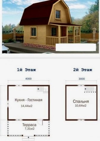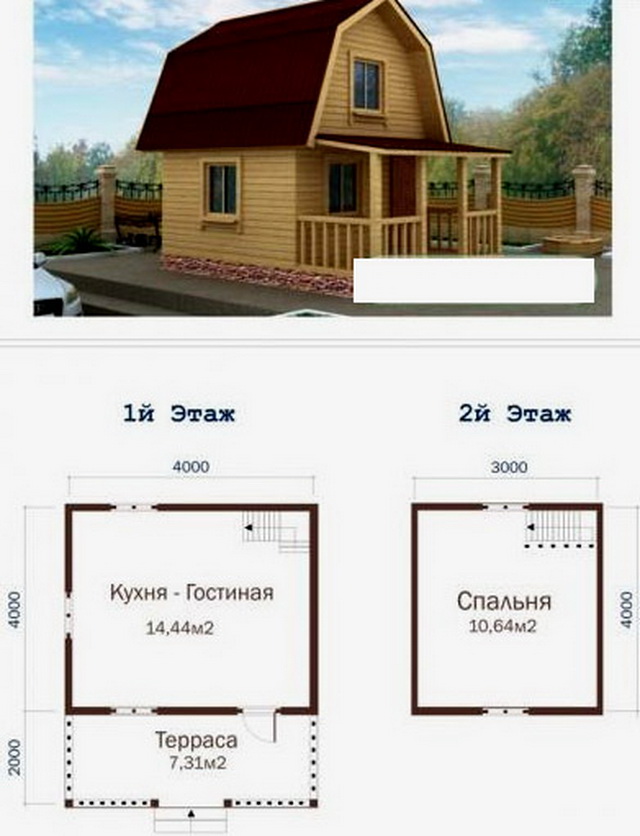 Für kleine Parzellen können Sie einen vorgefertigten Plan für kleine Landhäuser von 4x4, 4x6 Größen verwenden.