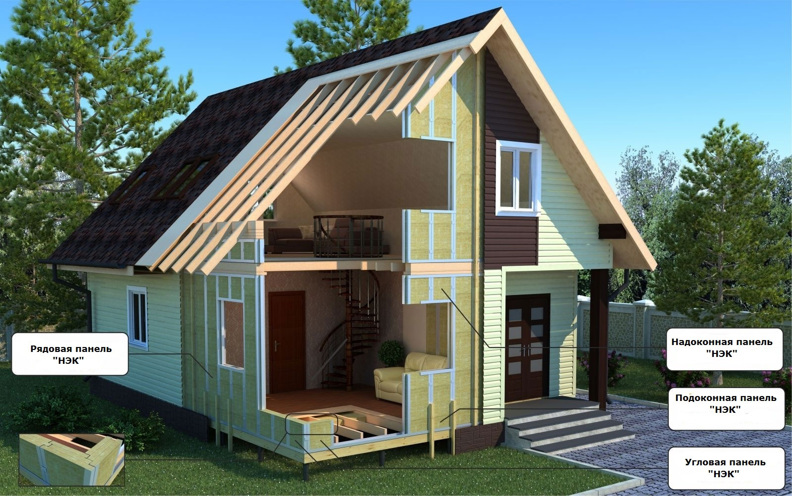 Eigenschaften von Rahmenhäusern mit Dachboden