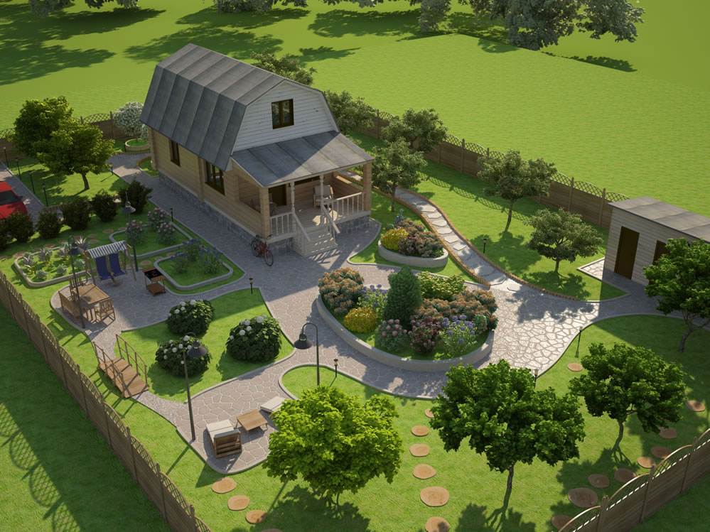 Jedes Haus in einem Land Grundstück sollte harmonisch aussehen, denn neben der Wohnung selbst sollte der Eigentümer des Landes das umliegende Gebiet verbessern. Bevor mit dem Bau begonnen wird, ist es wichtig, ein Modell für den zukünftigen Standort zu erstellen, wo neben dem Projekt eines privaten Hauses kompakte Nebengebäude, Gartendekorationselemente und dergleichen vorhanden sind.