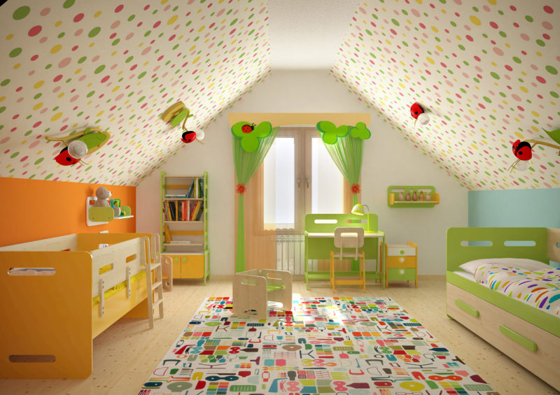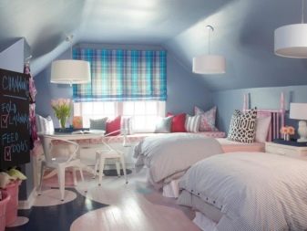 Der Dachboden eignet sich auch für die Einrichtung eines Kinderzimmers, besonders wenn zwei Kinder in der Familie in etwa gleich alt sind. Sie werden dort nicht gelangweilt sein, und sich sogar fragen, ob sie auch ein gutes Design und Funktionalität dieses Raumes haben.