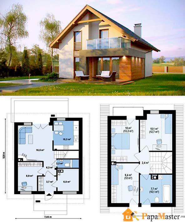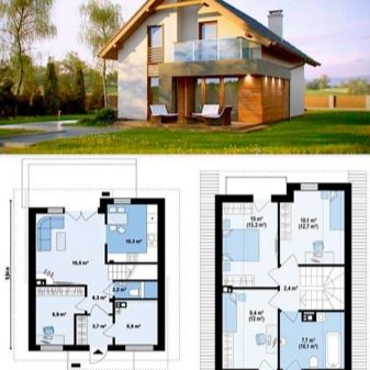 Meistens umfassen die Projekte von kleinen Häusern das Vorhandensein einer Küche, eines Wohnzimmers und von Gebrauchsräumen auf der ersten Etage. Die zweite befindet sich in der Regel Schlafzimmer, Büro, Kinderzimmer. Es ist verlockend, wenn Sie vom Dachboden auf den Balkon gehen können. Aber seine Anordnung kann viel kosten. Ein solcher Umzug wäre gerechtfertigt, wenn der Standort für das Haus sehr klein ist und es keinen zusätzlichen Platz für die Einrichtung einer gemütlichen Ecke gibt.