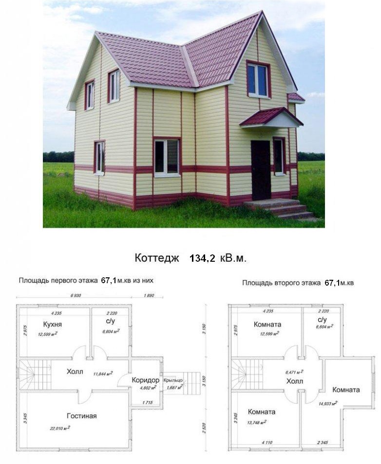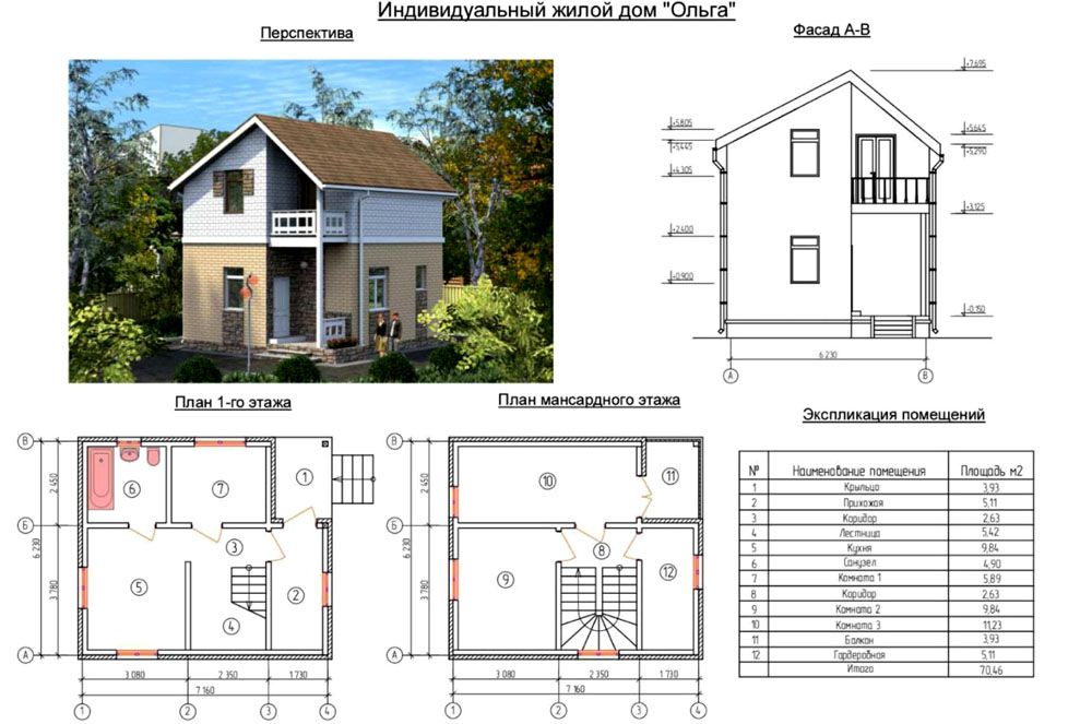 Eine Zeichnung eines hellen und funktionalen Hauses könnte so aussehen. Und für alle Räumlichkeiten gibt es einen Platz. Und Sie können eine komfortable Umgebung für alle Familienmitglieder schaffen.