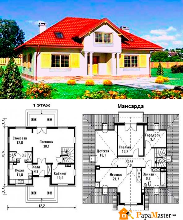Hier sind einige der erfolgreichsten Möglichkeiten für die Einrichtung des Dachgeschosses, auf deren Grundlage Sie Ihre eigenen erstellen können. Materialien können verwendet werden: Holz, Ziegel, Porenbeton, Schaumblöcke.
