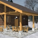 Die Terrasse ist bei allen Projekten am Haus angebracht oder ist zunächst auf einem gemeinsamen Fundament geplant. Es hängt von der Art der Umzäunung und dem Vorhandensein eines Daches ab. Wenn Sie die Terrasse zum Kochen von Speisen verwenden möchten (zum Beispiel Grill oder Kebab), lohnt es sich, eine gemeinsame Grundlage zu schaffen, die langlebig ist und der maximalen Belastung standhält. Wenn der Terrassenplatz für Erholung, Spiele oder eine rein ästhetische Funktion der Dekoration des Hauses vorgesehen ist, dann können Sie dies mit einer einfachen und leichten Holzkonstruktion auf Pfählen oder Säulen tun.