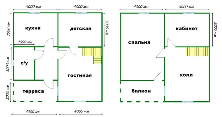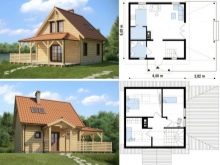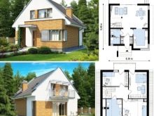 Solche Gebäude werden eine ausgezeichnete Option für Besitzer kleiner Gebiete sein. Wenn Sie den Boden unter dem Dach machen, erhalten Sie zusätzlichen Wohnraum, so dass Sie weniger Platz für das Fundament benötigen.