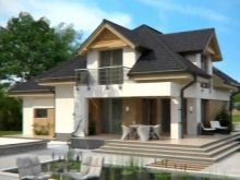 Projekte von fertigen Landhäusern mit einem Dachboden und einer Terrasse erlauben im Prinzip die Verwendung von verschiedenen Stilen und Layouts. Mansardengebäude werden aus Holz, Ziegeln, Holz, Schaumblöcken errichtet. Es gibt auch Steinhäuser und Cottages, die nach finnischer Technologie gebaut wurden (sie zeichnen sich durch Kompaktheit und gleichzeitig Wirtschaftlichkeit und Praktikabilität bei der Organisation von Wohnraum aus).