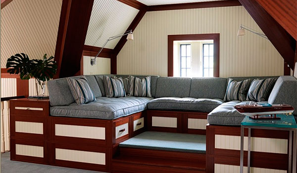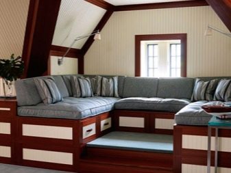 Häuser mit einer Mansarde und einer Terrasse unterscheiden sich von den üblichen nicht nur durch ihre Designmerkmale und ungewöhnliche Architektur, sondern auch durch die "Füllung".Da der Boden unter dem Dach Temperaturschwankungen unterliegt, ist er besonders sorgfältig von innen und außen isoliert und isoliert. Was das Interieur betrifft, ist es ein freies Layout mit einem Minimum an Partitionen. Und die Rolle der Zoneneinteilung kann gut durch Beleuchtung erfüllt werden, die auf dem Dachboden reichlich vorhanden sein sollte. Sie können die ursprüngliche und ungewöhnliche Fensterform schlagen.