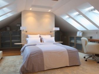 Ein wichtiges Merkmal des Dachbodens ist ein spitzes Dach, dessen Decken über dem Kopf einer Person im Inneren hängen. Um sich in der Dachbodenzone wohl zu fühlen, muss die Deckenhöhe am höchsten Punkt mindestens 2-2,5 Meter betragen. Und der Winkel der Steigung wird dümmer sein, desto leichter wird es unter dem Dach sein. Der Ausweg aus dieser Situation kann auch ein kaputtes Dach sein, das den maximalen Platz auf dem Dachboden freigibt.