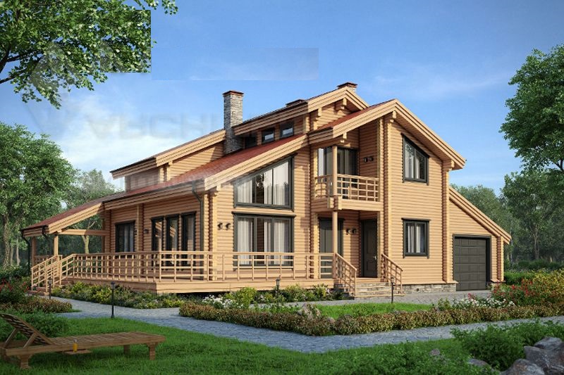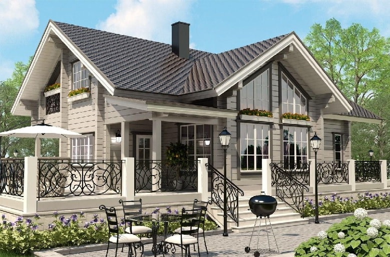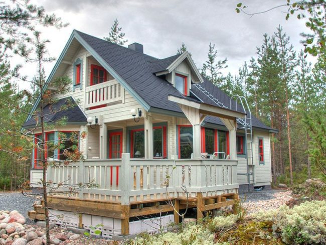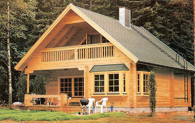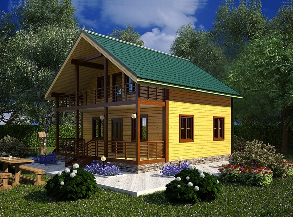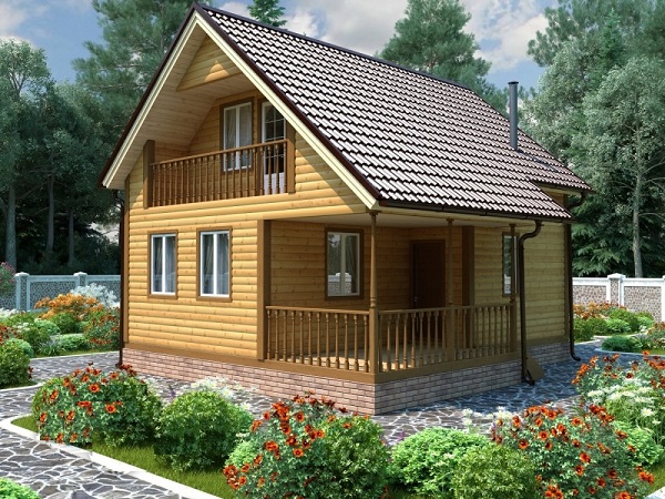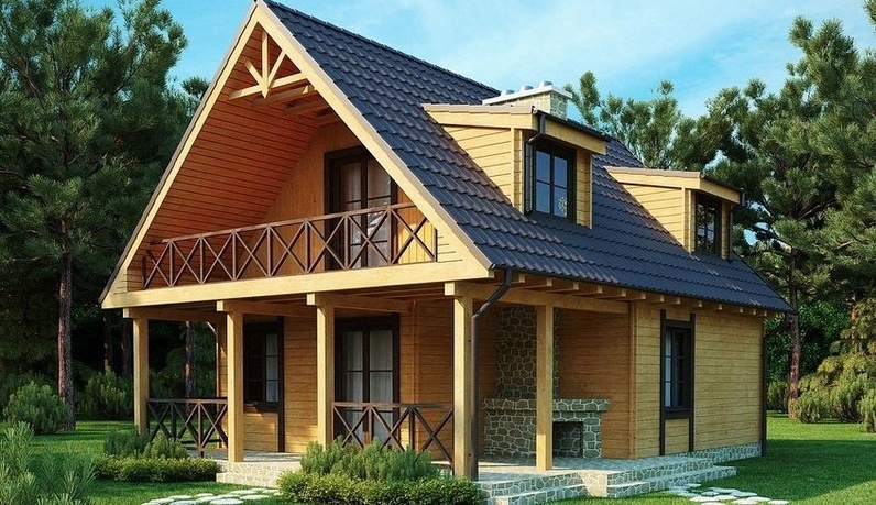 Ein Holzhaus mit Dachboden und Veranda ist die sicherste und umweltfreundlichste Bauweise.