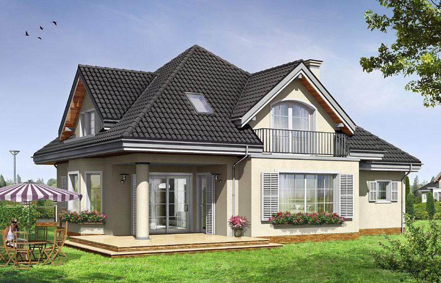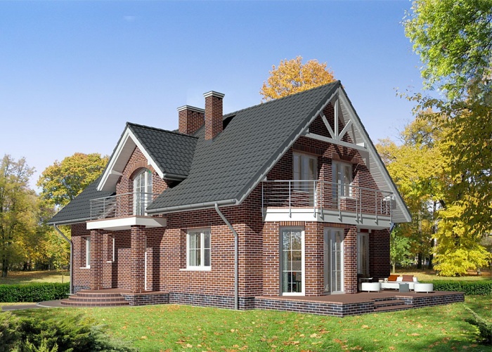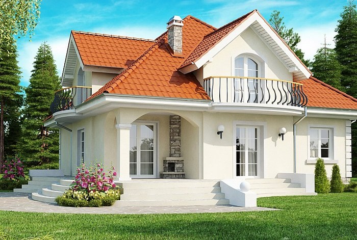Dachboden mit einem Balkon kann die Fassade des Hauses effektiv schmücken.