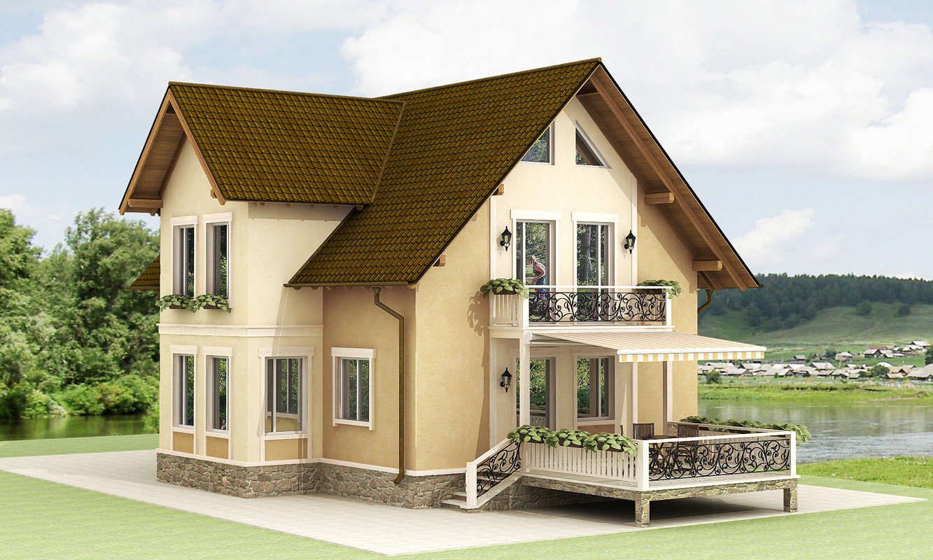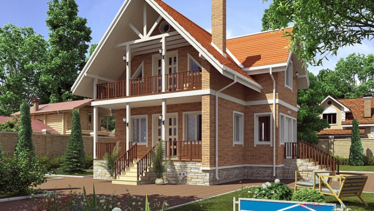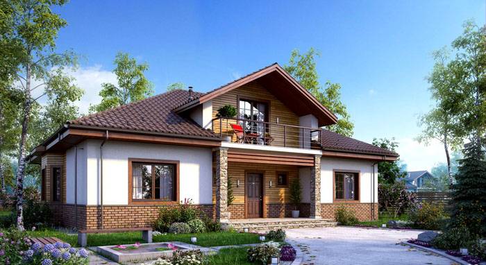 In der Entwurfsphase des Hauses wird die Anordnung der Räume, der technischen Netze und der gesamten Kommunikation durchdacht. Als eine Budgetwahl wird in der Regel ein Projekt eines Hauses mit einem Dachboden und einer Veranda von 6x6 Quadratmetern gewählt. m. Diese Fläche und 2-3 Etagen sind genug, um alle notwendigen Unterkünfte unterzubringen. Für solch ein Haus ist es vorzuziehen, ein gebrochenes Dachdach zu machen, so dass das Zimmer unter dem Dach geräumiger war.