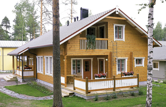 Ein Holzhaus ist eine ideale Wahl für die nördlichen Regionen des Landes, denn dieses Material speichert Wärme sehr gut, so dass Sie nicht einmal einen zusätzlichen Kamin benötigen. Der einzige Nachteil ist, dass man beim Bau eines Öko-Hauses wegen Schrumpfung des Blockhauses ein halbes Jahr warten muss und erst dann mit den Ausbauarbeiten beginnen kann.