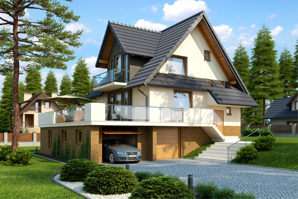 Schöne Projekte von Häusern mit Dachboden und Terrasse
