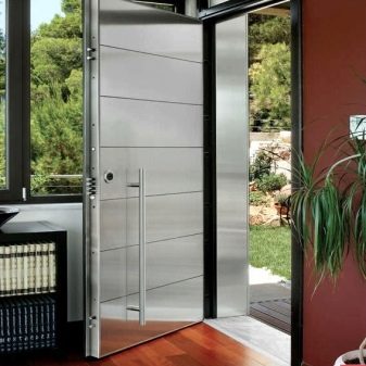 - Metall als Zubehör. Meistens ist es Edelstahl. Von ihrer Qualität und Aussehen hängt weitgehend ab, welchen Eindruck das fertige Produkt auf den Käufer machen wird.Aus diesem Grund neigen die belarussischen Türen dazu, nur die hochwertigsten und langlebigsten Armaturen mit einer hohen Haltbarkeit zu installieren. Es gibt nicht der Korrosion nach und verliert die ursprünglichen Eigenschaften während langer Betriebsjahre nicht.