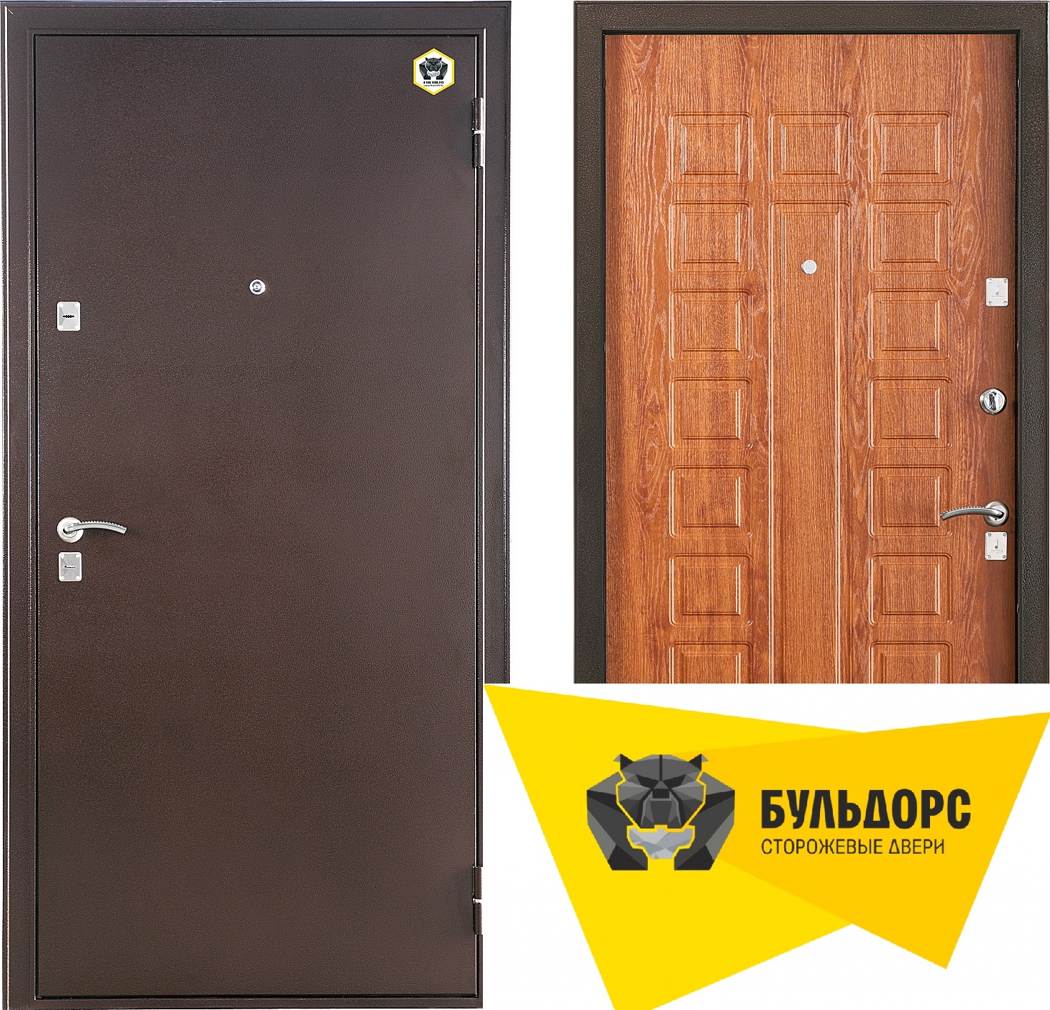 Türen "Bulldors 24" und "Bulldors 23" gehören zu den wirklich populären Modellen dieser Anlage. Vielleicht, weil diese Modelle nicht sehr teuer sind und das Paketbündel und das dreidimensionale Muster auf der Hauptleinwand eine ziemlich repräsentative Erscheinung erzeugen. Sie sehen wirklich gut aus, und das Vorhandensein eines Zwei-Schloss-Systems, eines Nachtschlosses und einer Einsteck-Panzerung, nicht abnehmbaren Schrauben und einer breiten Verkleidung wird niemanden gleichgültig lassen.