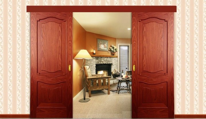 Schiebewände unterscheiden sich von der üblichen Tür dadurch, dass sie in der Regel zwei Leinwände sind. Sie arbeiten nach dem Prinzip des gleichen "Coupés" - sie bewegen sich dank der Führungen über die Öffnung auseinander. Sliding-Modelle haben nicht die übliche Box, nur so etwas wie ein großes Plateau an der Oberseite, dank dem sich die Tür zurück bewegt.