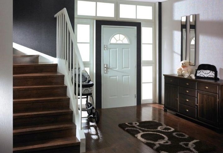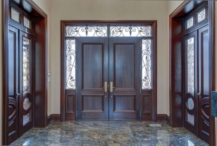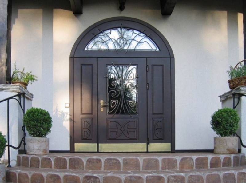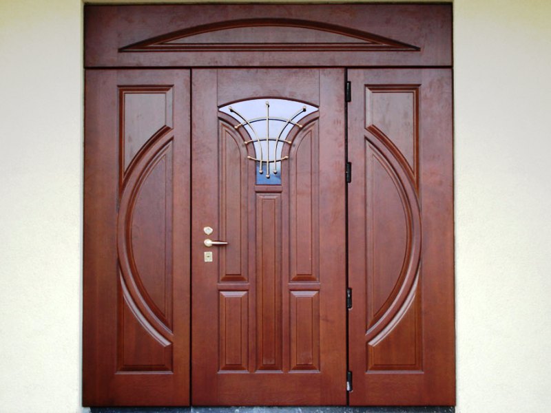 - Eingabe - Führen Sie hauptsächlich Schutzfunktion aus und nehmen Sie das Vorhandensein eines guten Türschlosses an. Verstärkt mit einem haltbareren Metallprofil, verstärkt mit Beschlägen, befestigt mit Scharnierscharnieren, die eine starke Verbindung mit der Türloot bieten. Es gibt Modelle ohne Glas, mit teilweiser oder voller Verglasung.