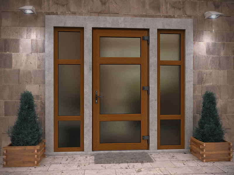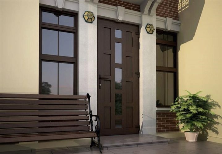 - Straße - In privaten Haushalten werden solche Konstruktionen mit Fenstern aus Fensterprofilen gleicher Farbe harmonieren. Es ist wichtig, dass die Tür auf der Sonnenseite des Gebäudes Mechanismen hat, um Verformungen zu verhindern, die mit Temperaturänderungen zusammenhängen, nämlich das Vorhandensein von mehr als einer Schlosszunge auf der Vorderseite. Zur besseren Wärmedämmung ist eine Dichtung um den Umfang vorgesehen.
