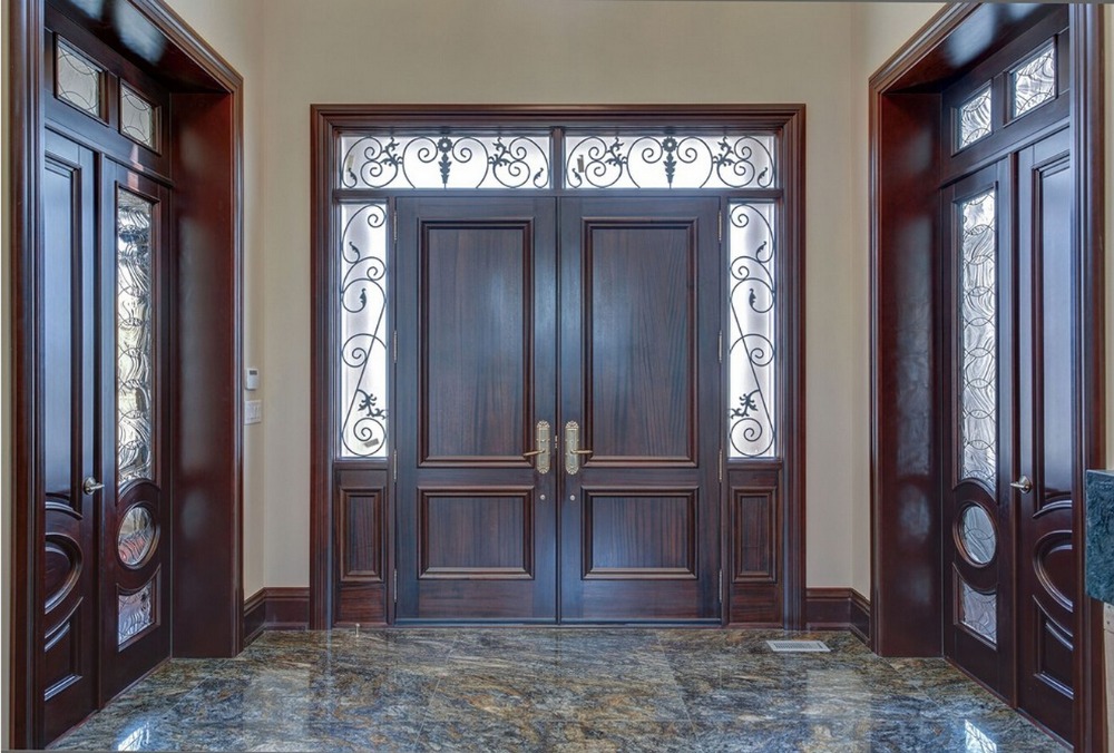 Hohe Tür Designs passen in Räume mit hohen Decken, wo die Türöffnung überdurchschnittlich ist. Darüber hinaus, wenn die Länge des Türflügels überschreitet die zulässige, zusätzlich installieren Sie den Spiegel im oberen Teil der Türeinheit. In der Tat ist dies ein taubes Fenster, das entweder aus Kunststoff (Sandwich-Paneel) oder mit einem doppelt verglasten Fenster sein kann.