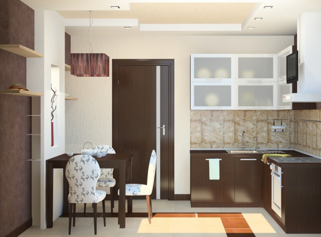 Für eine Küche jeder Größe können Sie eine funktionelle Leinwand mit Zwischenschränken wählen. Seine Farbe ist in der Regel auf den Ton der Leinwand abgestimmt und macht das Ganze optisch aus.