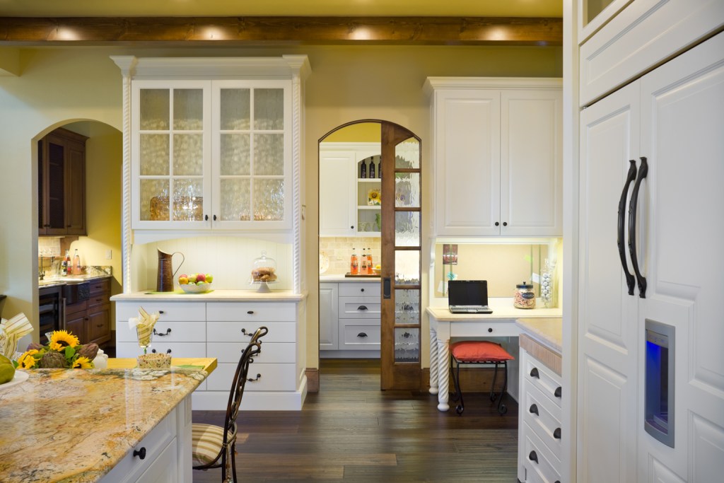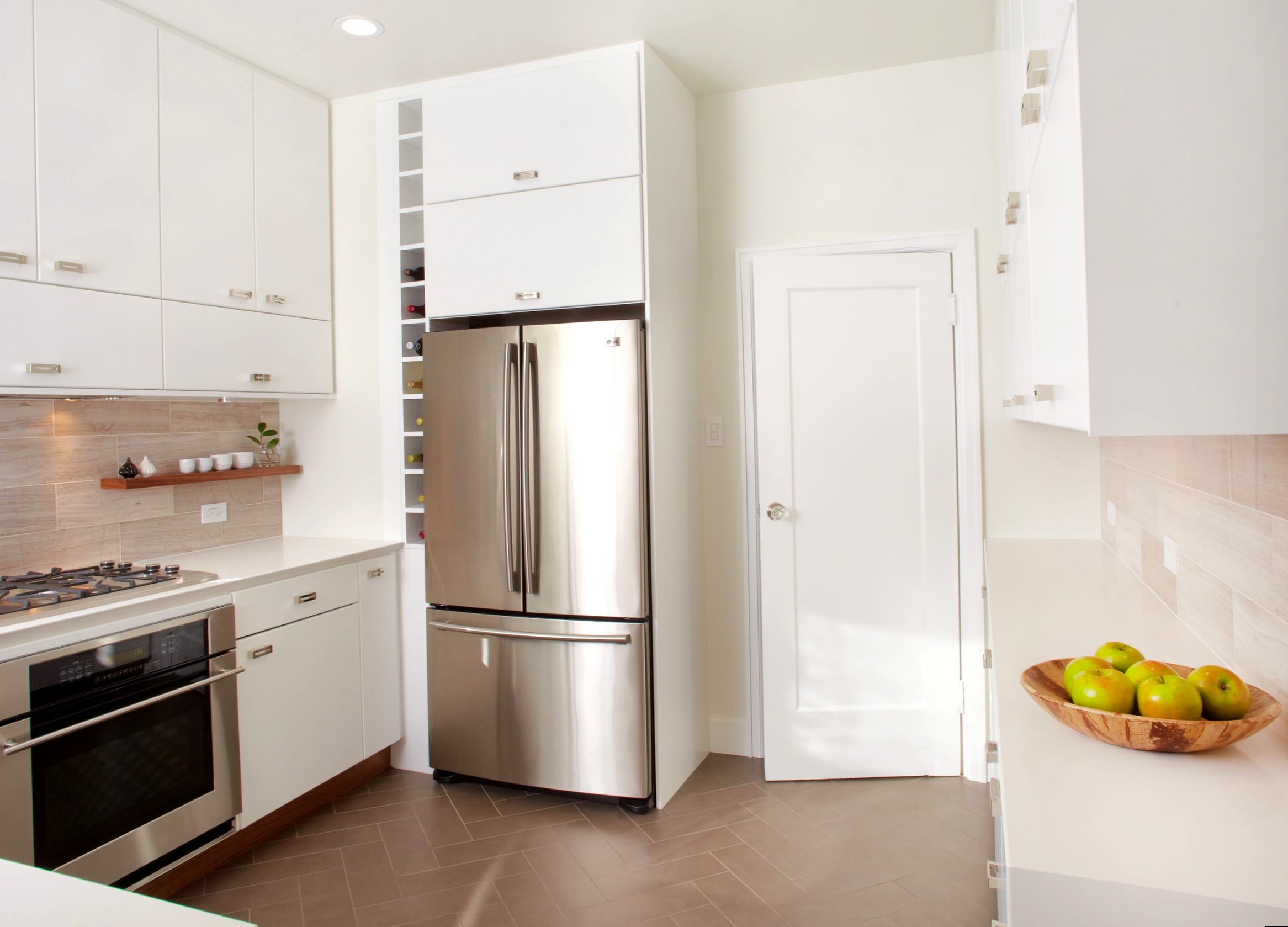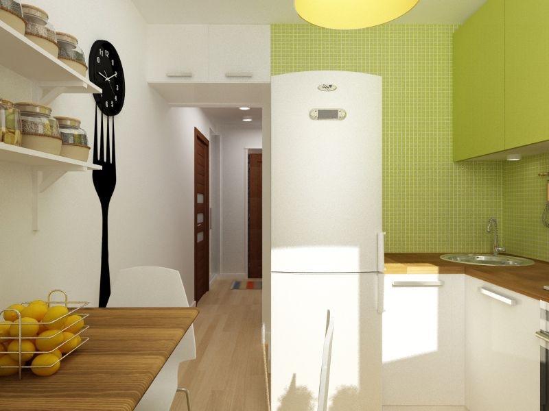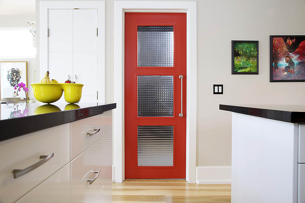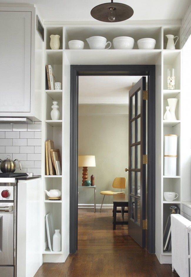 Wenn die Küchentür in den Flur führt, wählen Sie sie passend zum Rest aus.Zu vom Flur geöffnetes Panorama des gleichen Stils und der Farbe von Gemälden.