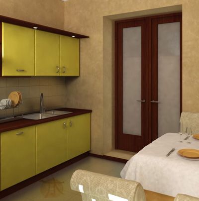 Die Art der Türöffnung unterscheidet sich nicht wesentlich. Einfachheit und Zugänglichkeit bestehen in einer einzelnen Schwenktür für eine Standardöffnung. Für Nicht-Standard - Doppelflügel-Modell. Schiebetüren verwandeln den Küchenraum, öffnen sich mit minimalem Aufwand und werden nicht durch einen scharfen Luftstrom zugeschlagen, aber das System ihrer Öffnung kostet mehr als anderthalb bis zwei Mal.
