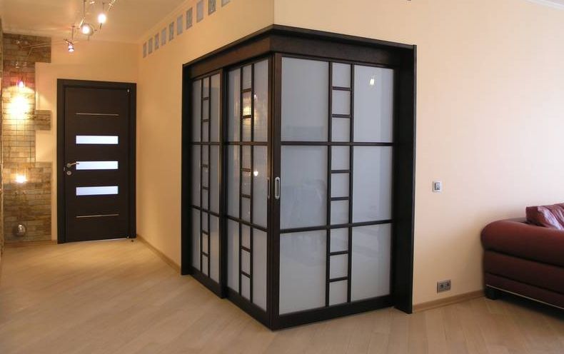Die Tür, die sich in die Öffnungsnische zurückzieht oder sich entlang der Wand bewegt. Es spart Platz in der Wohnung und benötigt keinen zusätzlichen Platz zum freien Öffnen, wie sein Pendant. Plus ein Schiebe-Modell - findet nicht statt, schafft Ästhetik im Innenraum. Minus - hoher Preis und Schwierigkeit zu installierenvor allem wenn die Leinwand in einer Nische "versteckt" werden soll. Eine solche Nische muss in der Phase der Rohbearbeitung erstellt werden.