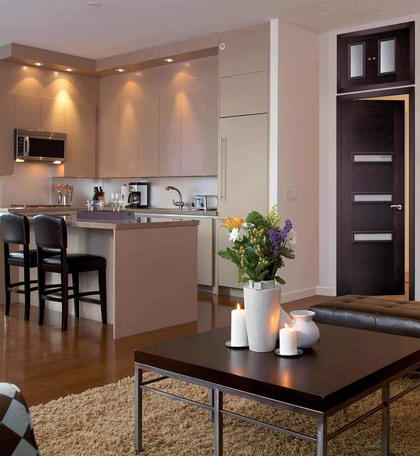 - Schafft Komfort. Die Tür ist längst nicht mehr nur eine Trennwand. Heute schmückt es das Interieur, transformiert, setzt den Stil. Und ohne eine Leinwand in der Küche wirkt das Interieur unvollendet.