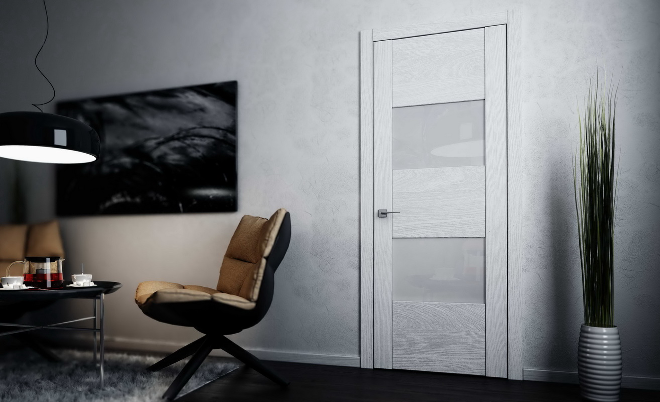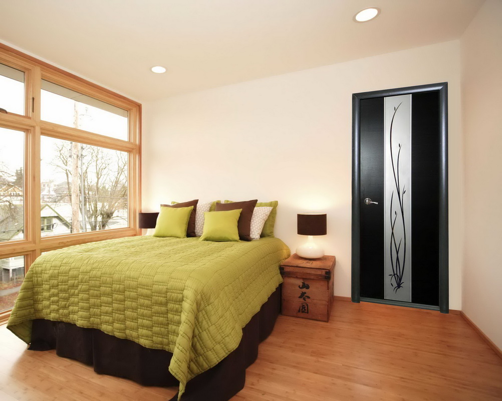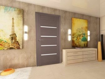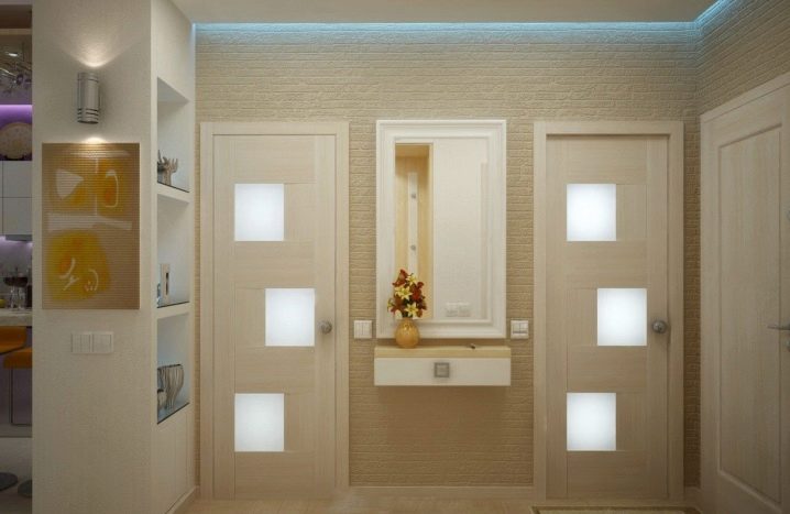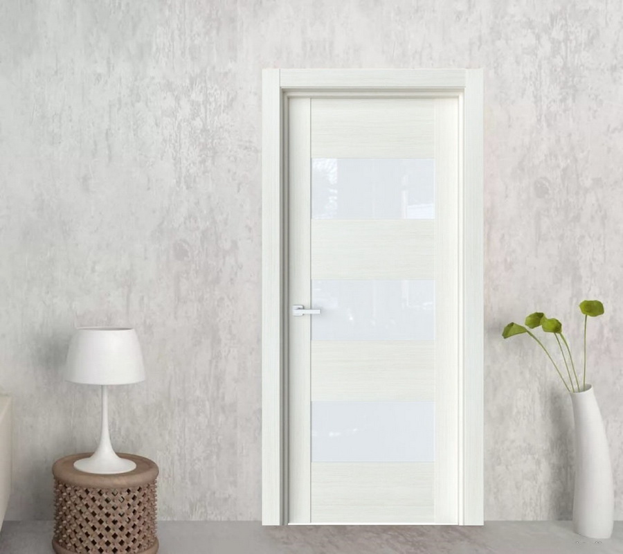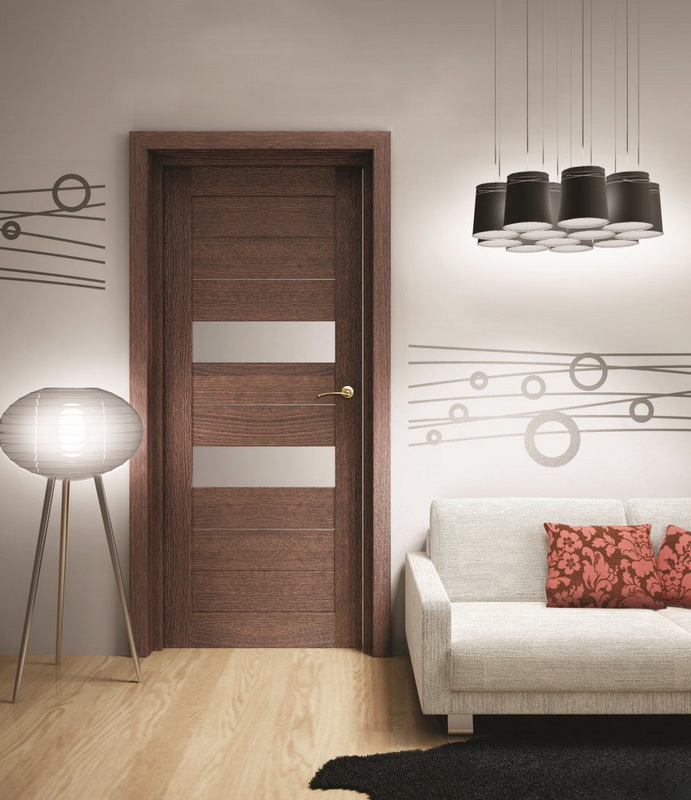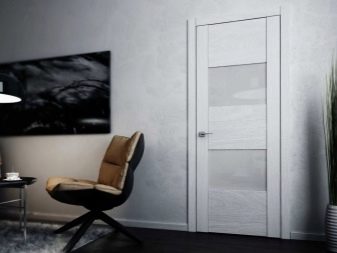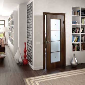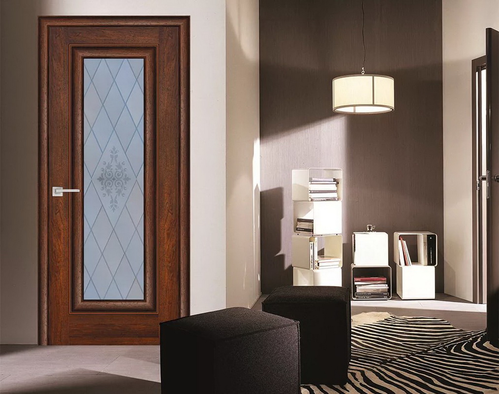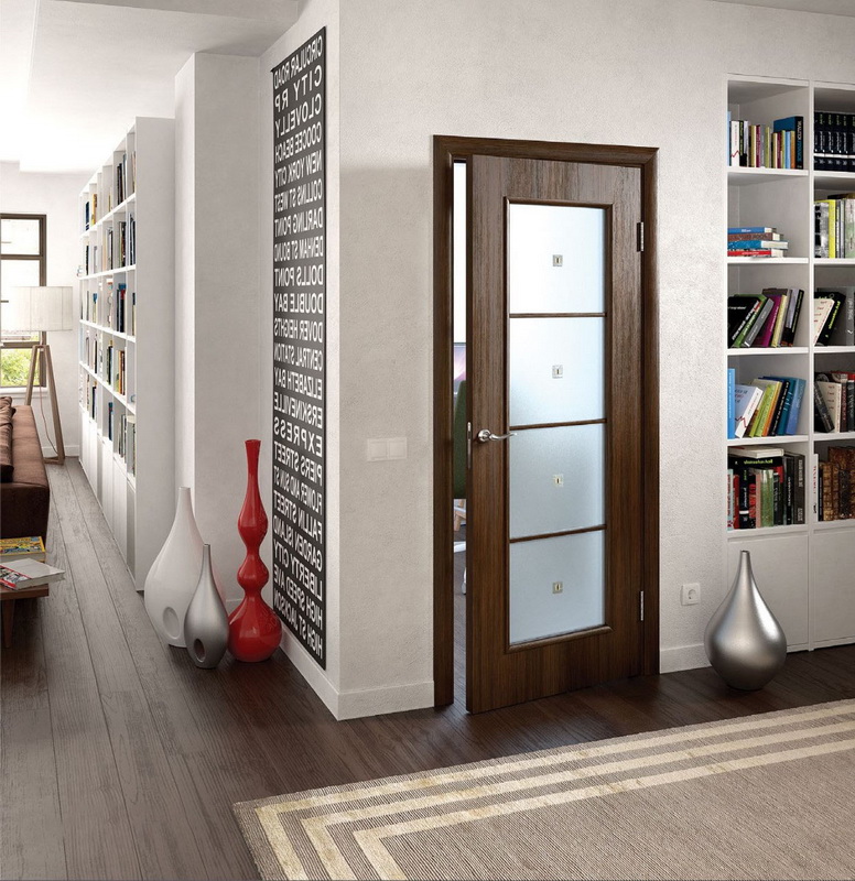 Die Tür mit Glas verwandelt das Innere. Der Glaseinsatz kann halb oder fast die ganze Tür einnehmen, es können dünne glänzende Streifen oder kleine Elemente sein.