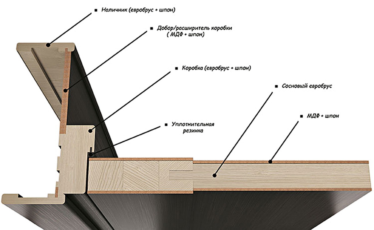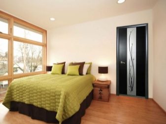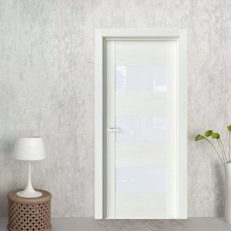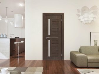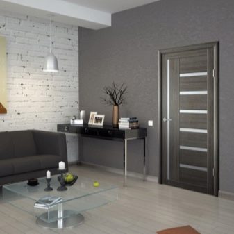 Türen aus einem Öko-Bereich unterscheiden sich in einem Design (taub, mit einem Panel oder Glas), Design und Kosten. Das Gerät von fast jedem solchen Modell sieht so aus: