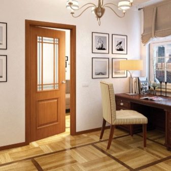 - Wenn wir über natürliches Holz sprechen - ein Array und Furnier, dann synthetische Beschichtung gewinnt sie manchmal in Qualität. Es ist feuchtigkeitsbeständig, was man nicht von 100% Holz sagen kann: Es kann sich durch hohe Luftfeuchtigkeit oder zu trockene Luft im Raum verformen. Abhängig von den Betriebsbedingungen sind diese Änderungen möglicherweise für das Auge nicht sichtbar. Natürlich sieht das Array ästhetischer und teurer aus als Kunstrasen, schafft ein günstiges Raumklima. Der Unterschied zwischen der künstlichen Oberfläche liegt in der Beschichtung selbst. Experten betrachten laminierte Türen als die beste Wahl im Economy-Class-Segment: Sie imitieren das natürliche Furnier in Struktur und Farbe, im Inneren sind sie in der Regel solide Kiefer - langlebiges Material mit hervorragenden Schall- und Wärmedämmeigenschaften.