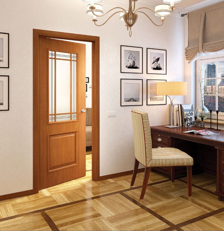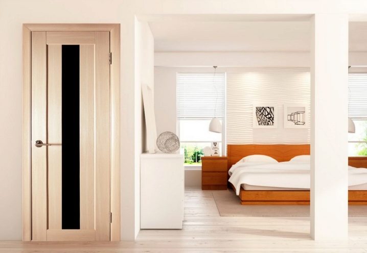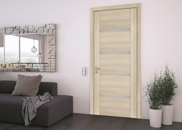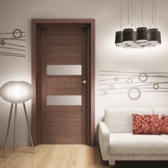 Furnierte Türen sehen im Innenraum gut aus, manchmal sind sie nur schwer von natürlichem Holz zu unterscheiden. Und umgekehrt Solche Türen zeigen ihre Entstehung mit glänzendem Glanz und einer perfekten gleichmäßigen Beschichtung.