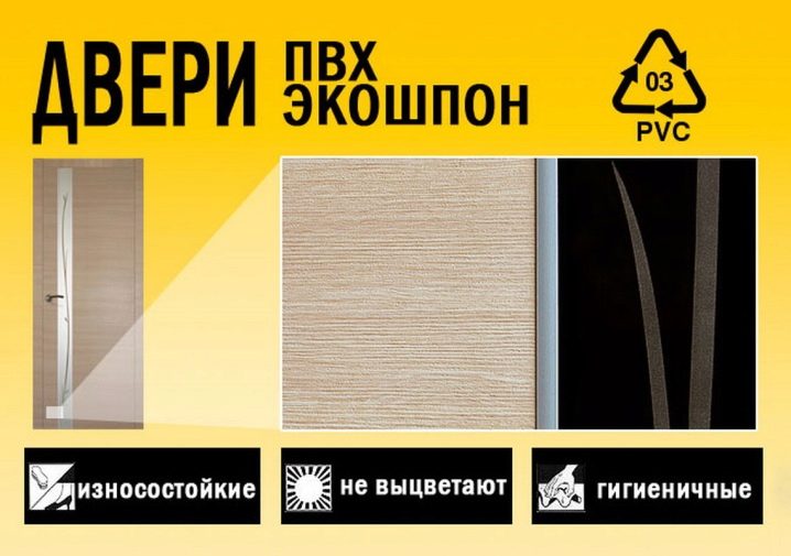 - Resistent gegen Feuchtigkeit. Der Öko-Mantel ist resistent gegen Temperaturwechsel, Feuchtigkeit und sogar Wassereintritt auf die Leinwand, daher können Türen mit einer solchen Beschichtung keine Angst haben, ins Bad zu gehen;