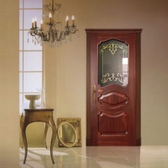 Besondere Aufmerksamkeit sollte Proben von gespleißtem Holz gewidmet werden, die mit Glas oder anderen dekorativen Elementen sein können. Diese Türen sind ein Symbol für Reichtum und unterstreichen perfekt den gesamten Stil des Raumes.