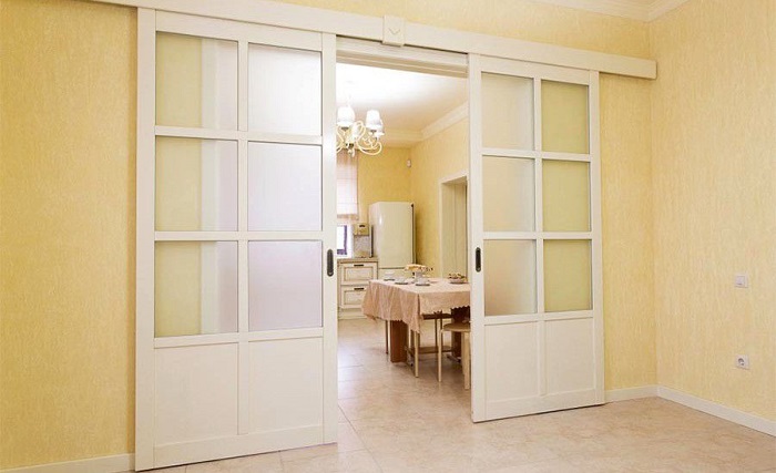 - Schiebe. Der Vorgang des Öffnens erfolgt durch Schieben der Tür entlang der Führungen. Eine gute Option für kleine Zimmer.