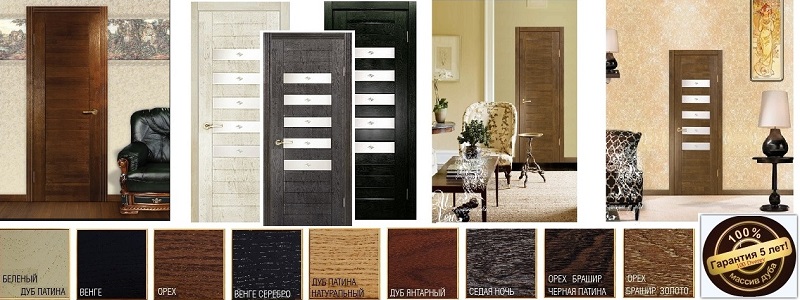 Die gesamte Farbpalette der Massivholztür-Designs verbindet auf harmonische Weise Eleganz, Eleganz und Ausdruckskraft, wobei die natürliche Struktur des Holzes betont wird. Unter den präsentierten Farben können Sie leicht die am besten geeigneten Türen für Ihr Zuhause, Ihre Wohnung und Ihren öffentlichen Raum auswählen.