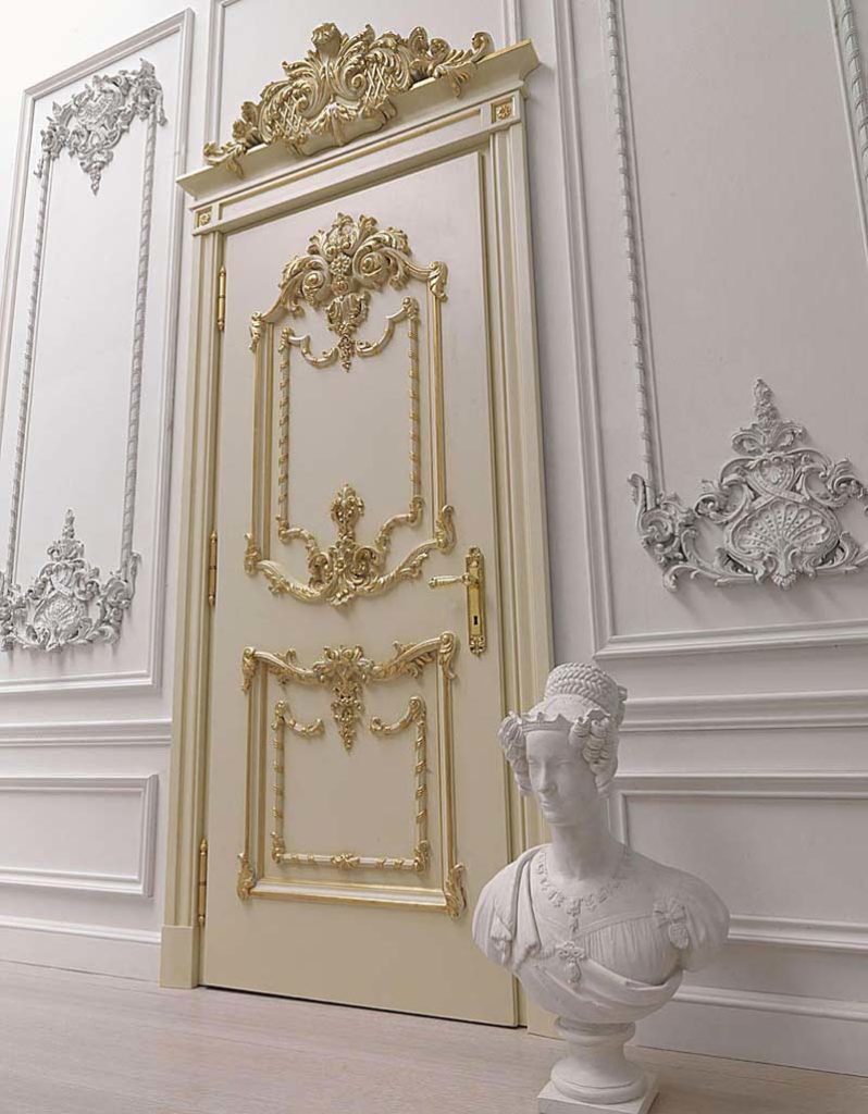- Barock. Tür Designs in diesem Stil sehen edel und elegant aus, da sie einzigartige Muster und helle Farben kombinieren.