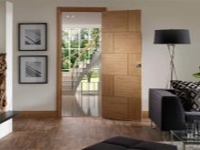 Es ist erwähnenswert, dass die Innentür zwischen zwei Räumen unterscheidet, die völlig unterschiedliche farbige Bodenbeläge haben können. Die ideale Option in solchen Wohnungen ist die Installation von Türprodukten, Verkleidungen und Sockelleisten in kalten Farben. Es kann Nussbaum, Buche, Eiche natur sein.