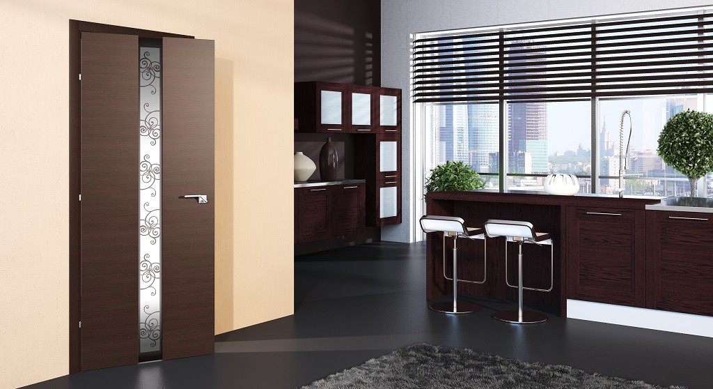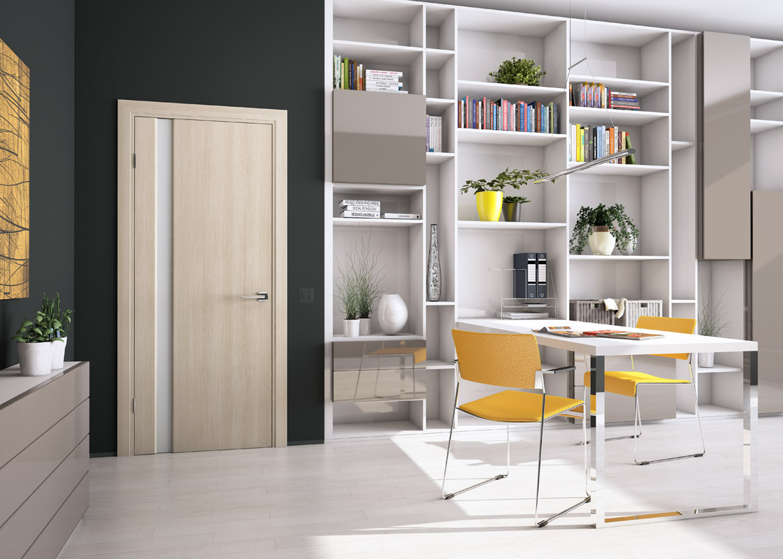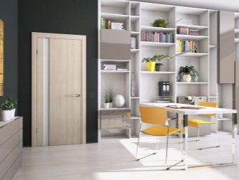 - Um ein besonderes Interieur im Büro oder Homeoffice zu schaffen, können Sie Türblätter in Dunkelbraun oder Schwarz erwerben.